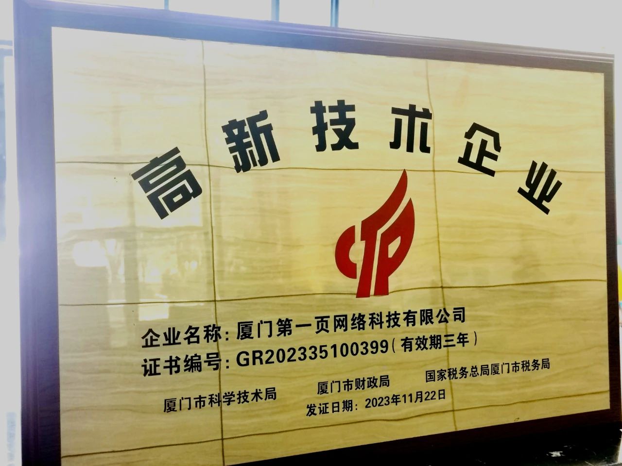 第一頁網絡科技有限公司再次榮獲國家高新技術企業(yè)認證,更好地助力中國企業(yè)品牌出海!
